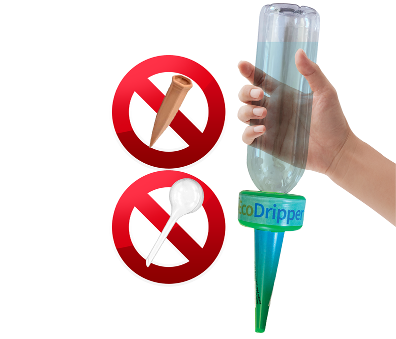 Watering globes and spikes can add too much water and rot the roots of your plant. Simply spin EcoDripper onto your bottle without tightening, and you're good to go!
